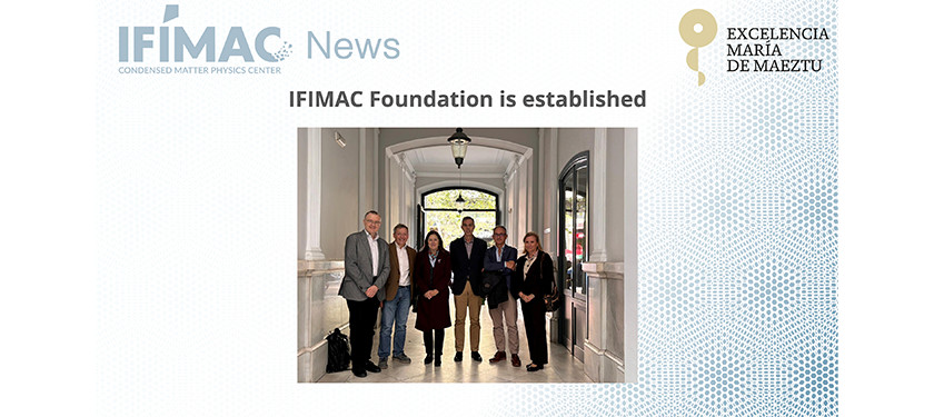 English: Madrid, April 13. The IFIMAC Foundation was officially established with the formal signing of its public deed of incorporation. Following the ceremony, the Board of Trustees held its inaugural meeting. The board is comprised of the Rector of the Universidad Autónoma de Madrid, Amaya Mendikoetxea, the Vice-Rectors for Scientific Policy and Transfer & Innovation, María Ángeles Martín Cabrejas and Félix Zamora, the Director of IFIMAC, Rubén Pérez, and Professors Francisco J. García Vidal and Enrique García Michel.